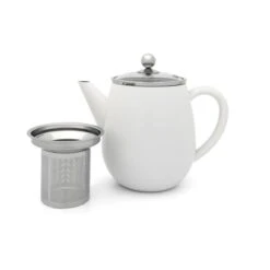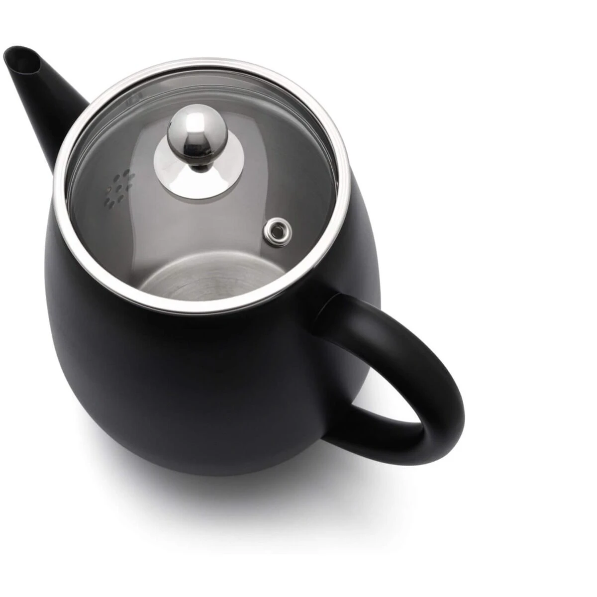 De Bredemeijer Duet Eva theepot is vervaardigd uit matzwart roestvrij staal. De theepot is dubbelwandig waardoor de inhoud langer op temperatuur blijft. De Bredemeijer theepot heeft een inhoud van 1,1 liter en is voorzien van een zwarte kunststof greep. Gebruik de pot voor het maken en uitschenken van thee. De theepot wordt geleverd met een theefilter om losse thee te kunnen gebruiken.
