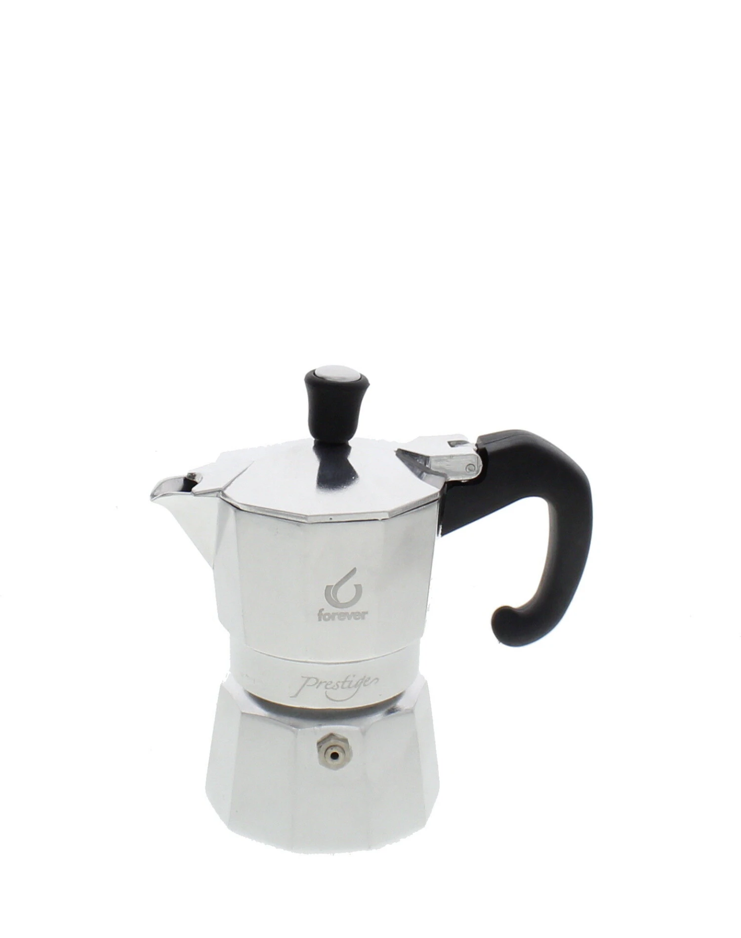 De Forever Miss Moka Prestige mokapot, ook wel percolator genoemd, is vervaardigd uit aluminium en geschikt voor het bereiden van 1 kop espresso. Vul de mokapot met versgemalen bonen en zet deze op het fornuis om authentieke koffie te bereiden. De Forever Miss Moka Prestige mokapot is geschikt voor gebruik op een gas-, elektrisch, keramisch of halogeenfornuis.