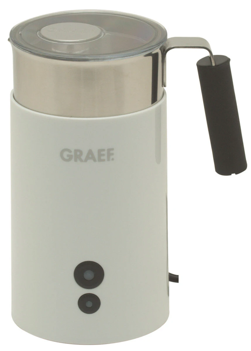 De witte elektrische melkopschuimer van Graef is van kunststof en heeft een maximale inhoud van 200 ml melk voor opschuimen van melk tot 400 ml schuim. Voor het verwarmen van melk heeft de schuimer een capaciteit van 350 ml. Met een vermogen van 545 W (bij 230 Volt) wordt uw melk in korte tijd verwarmd en geschuimd.