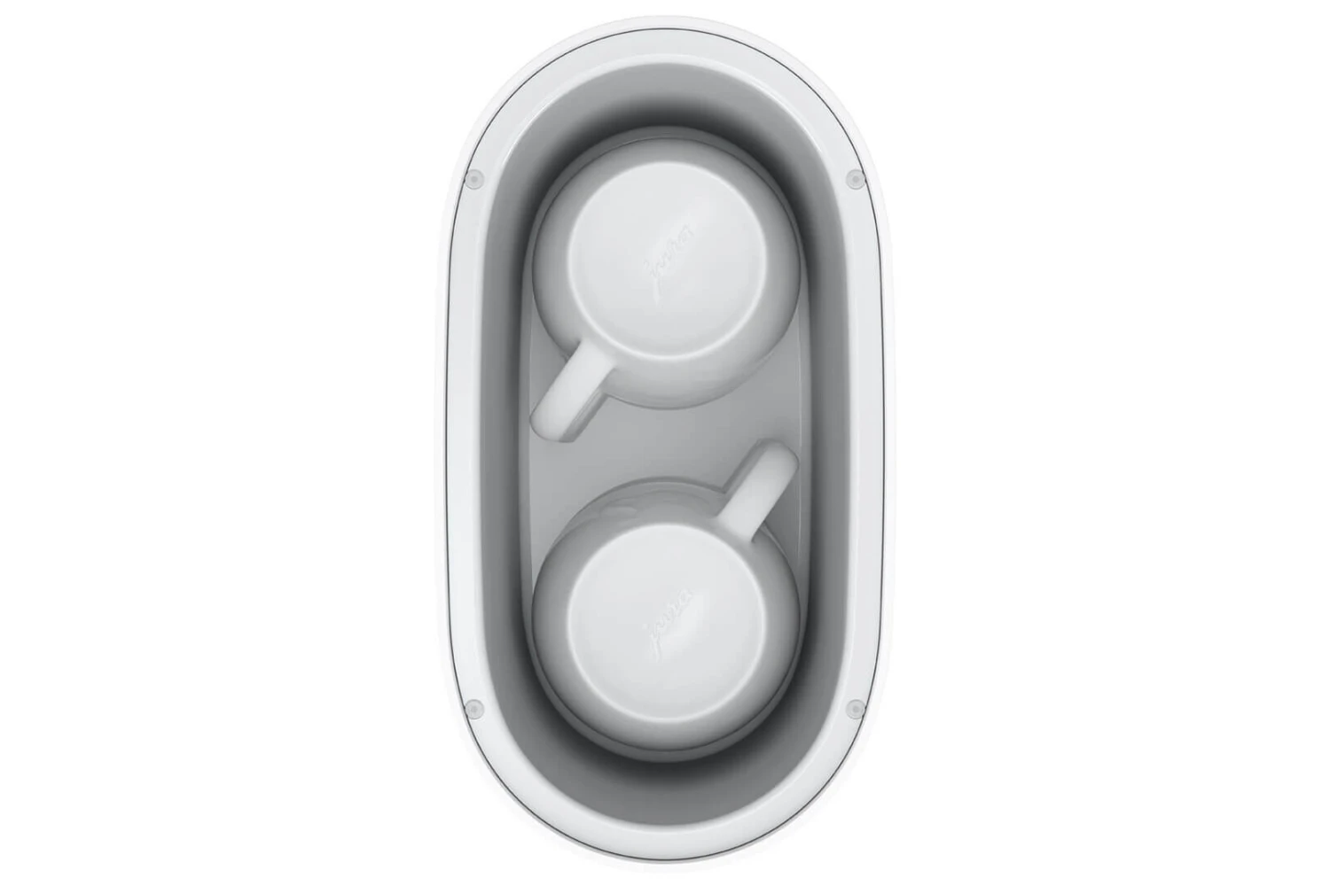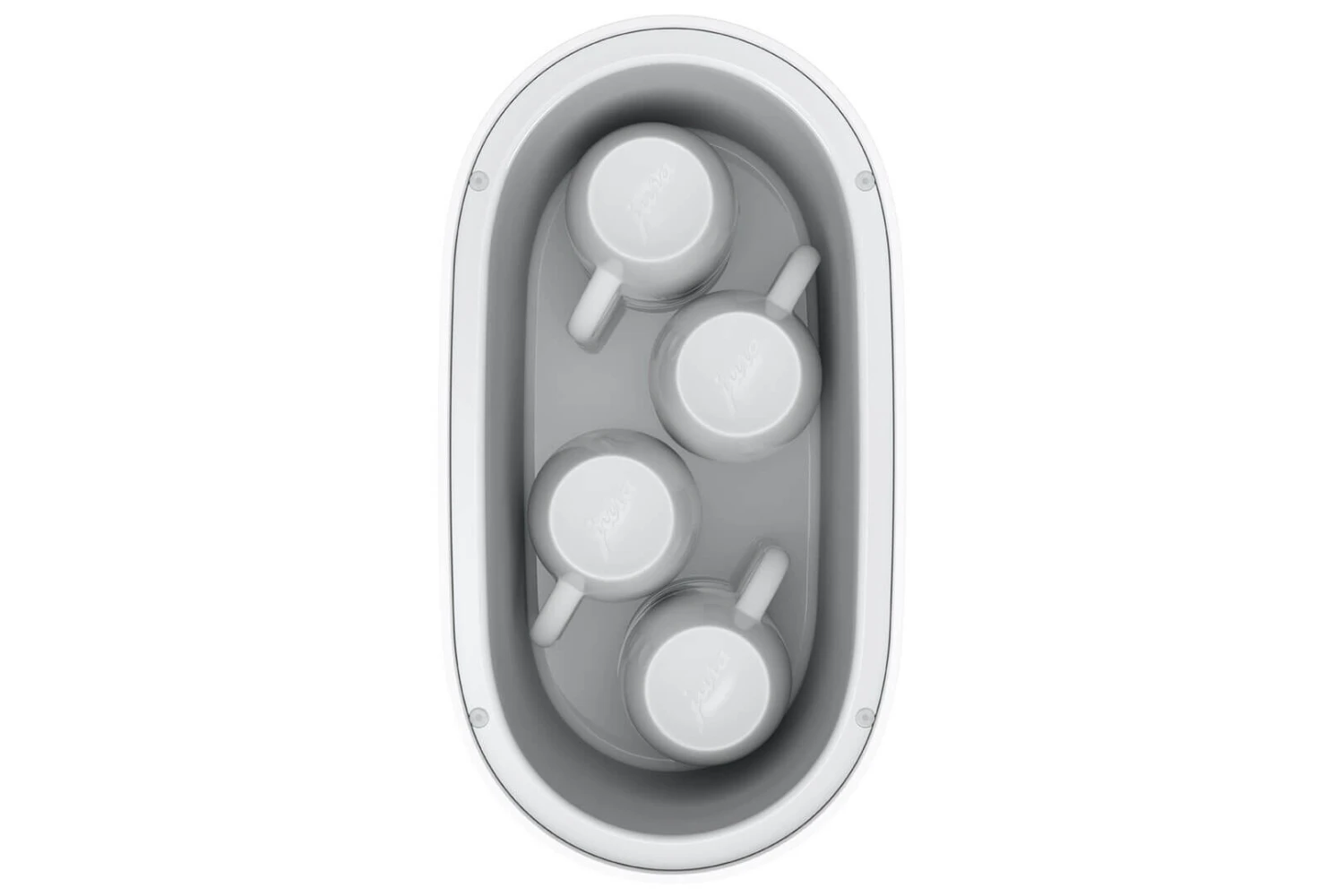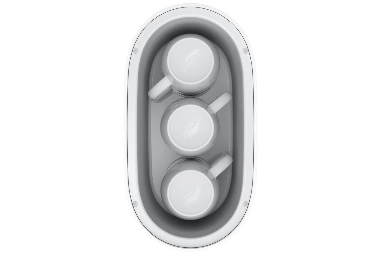 De witte kopjeswarmer van JURA verwarmt 8 espresso-, 6 koffie- of 4 cappuccinokopjes tegelijkertijd. De koppenwarmer is vervaardigd uit transparant en wit aluminium, met 2 lades van roestvrij staal. De kopjes worden constant verwarmd op een temperatuur van ca. 55 °C. Door de JURA kopjeswarmer af te dekken voorkomt u warmteverlies en bespaart u energie. Gebruik de kopjeswarmer om uw espresso- of koffiekoppen te warmen voordat u er koffie in schenkt.