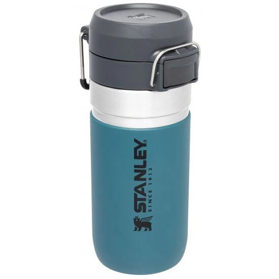 De Lagoon, blauwe, Stanley The Quick Flip Water Bottle is gemaakt van dubbelwandig 18/8 roestvrij staal en heeft een inhoud van 470 ml. De Stanley waterfles heeft een gewicht van 320 gram, een diameter van 7,6 cm en is 20,3 cm hoog. Gebruik voor het meenemen van diverse koude dranken. Koude dranken blijven tot wel 7 uur lang koud, ijs blijft tot wel 30 uur ijskoud. De waterfles is volledig lekvrij en hierdoor veilig in gebruik.
