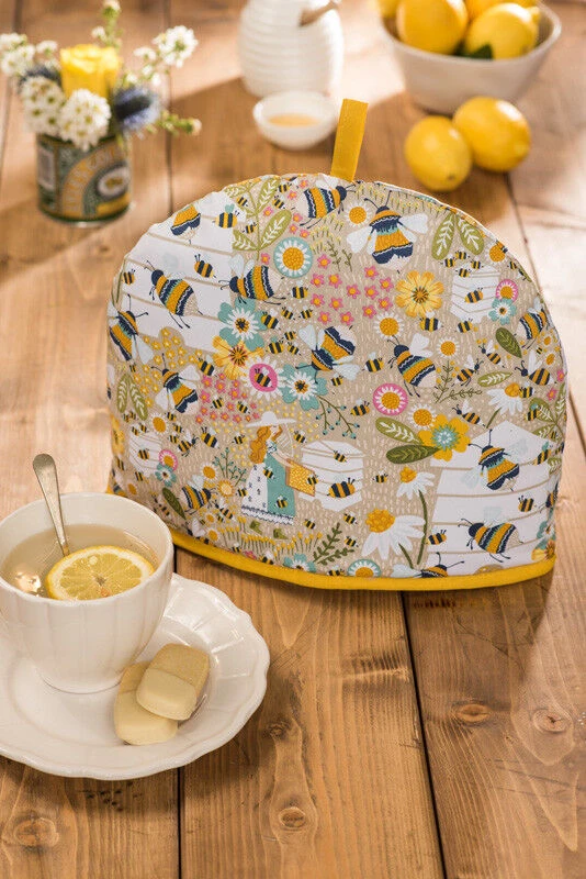 De Bee Keeper theemuts van Ulster Weavers is vervaardigd van katoen en voorzien van een polyester vulling voor isolatie. Gebruik de theemuts om uw theepot langer op temperatuur te houden. De theemuts is voorzien van afbeeldingen van bijen op een beige ondergrond. De theemuts is 35 cm lang en 27 cm hoog.